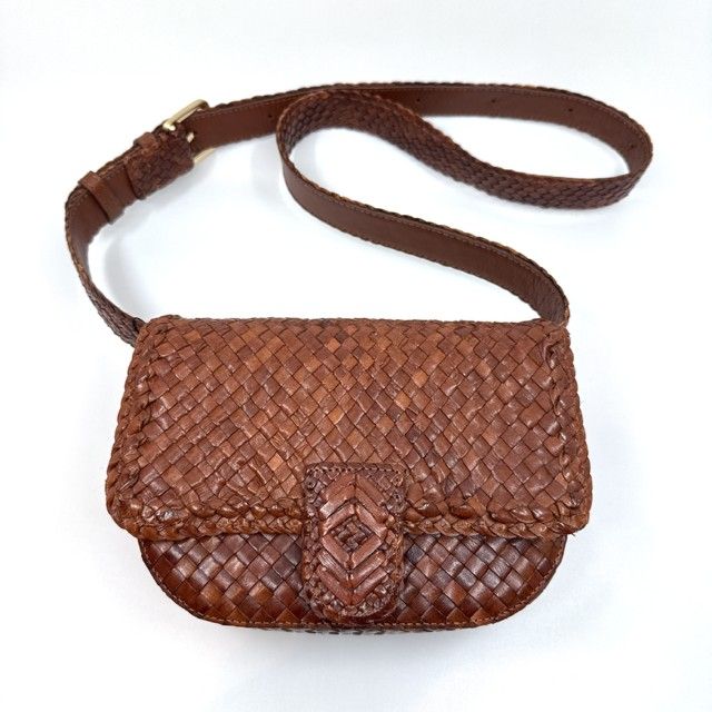 kleine crossbody in cognac gevlochten leder, kan ook als heuptas gebruikt worden.