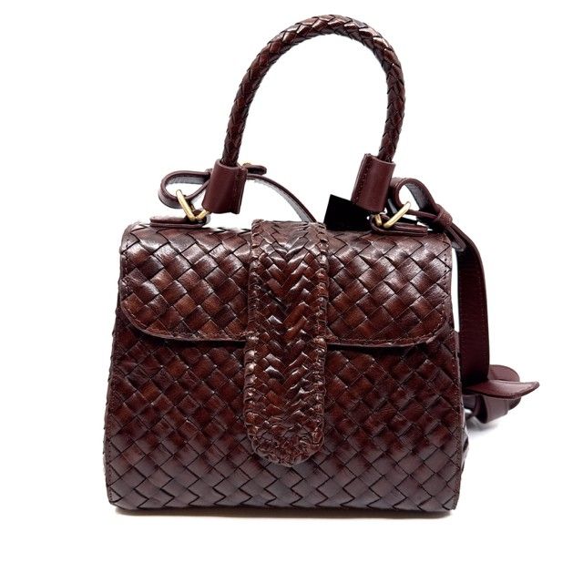 kleine handtas in gevlochten leder, kan met of zonder lange riem.