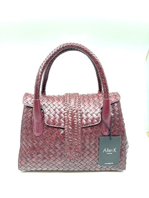 Schoudertas in burgundy gevlochten leder, inclusief lange riem.