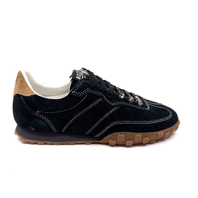 sneaker in donkergroene daim met uitneembaar voetbed.