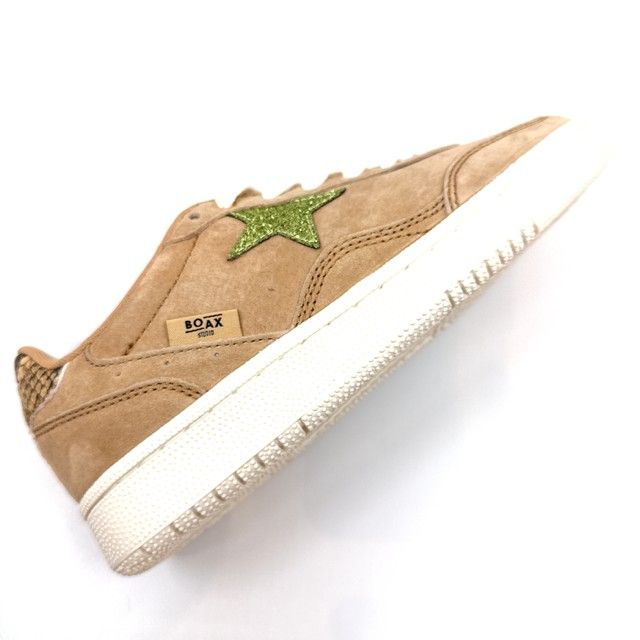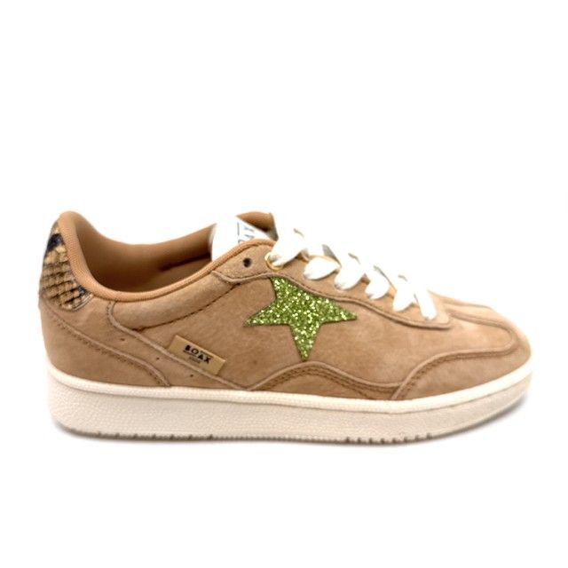 sneaker in beige daim met groene ster, uitneembaar voetbed.