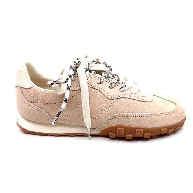 beige sneaker met 2 veters en antislipzool.