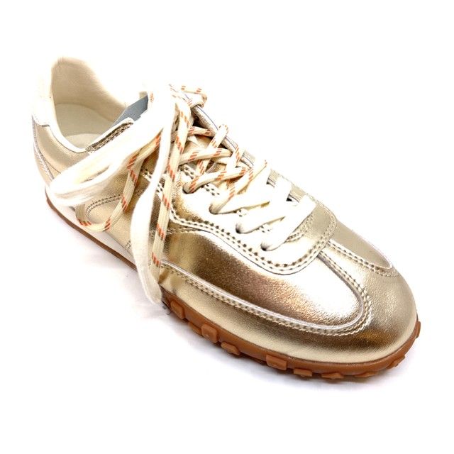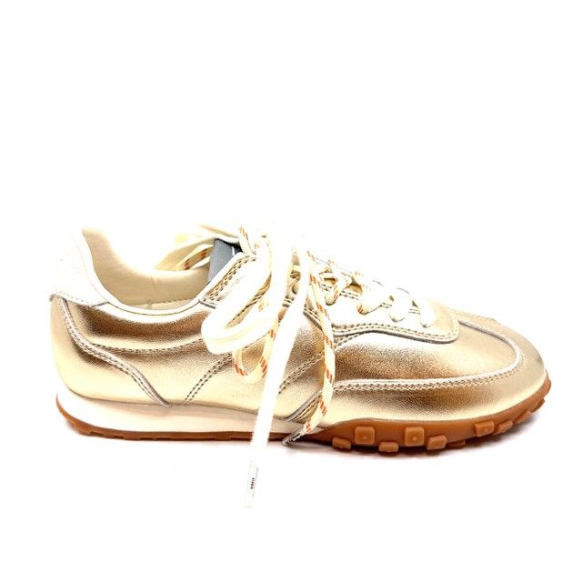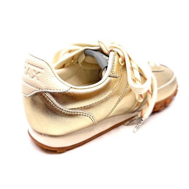 sneaker in goud leder met 2 veters en uitneembaar voetbed.