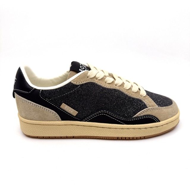 sneaker in grijze daim met glitters en uitneembaar voetbed.