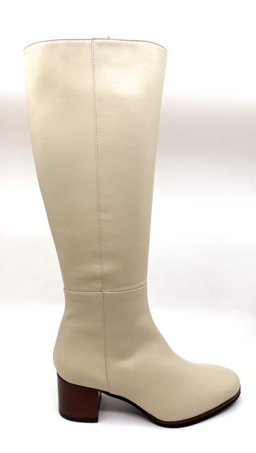 lange laars in off-white leder met middelhoge hak en antislipzool.