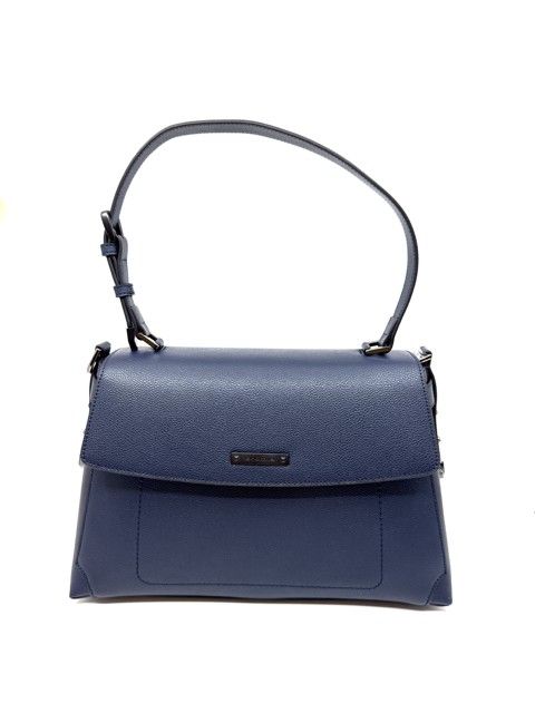 schoudertas in blauw leder, inclusief lange riem.