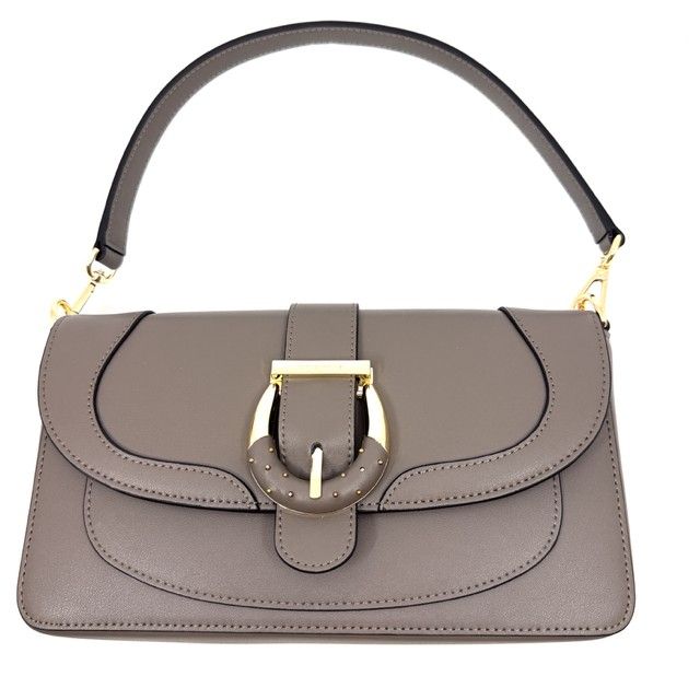 Schoudertas in taupe leder, inclusief lange riem.