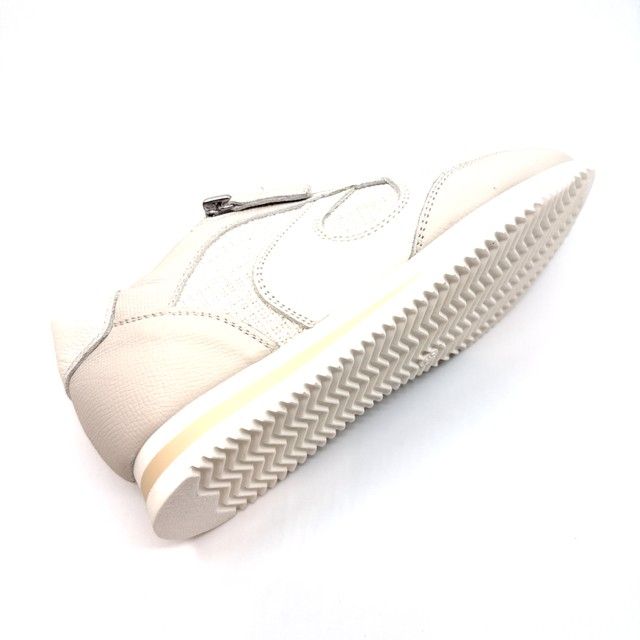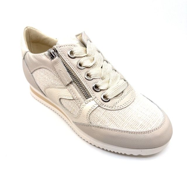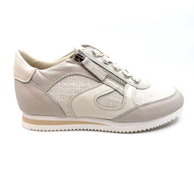 sneaker in off-white leder met tweed, uitneembaar voetbed.