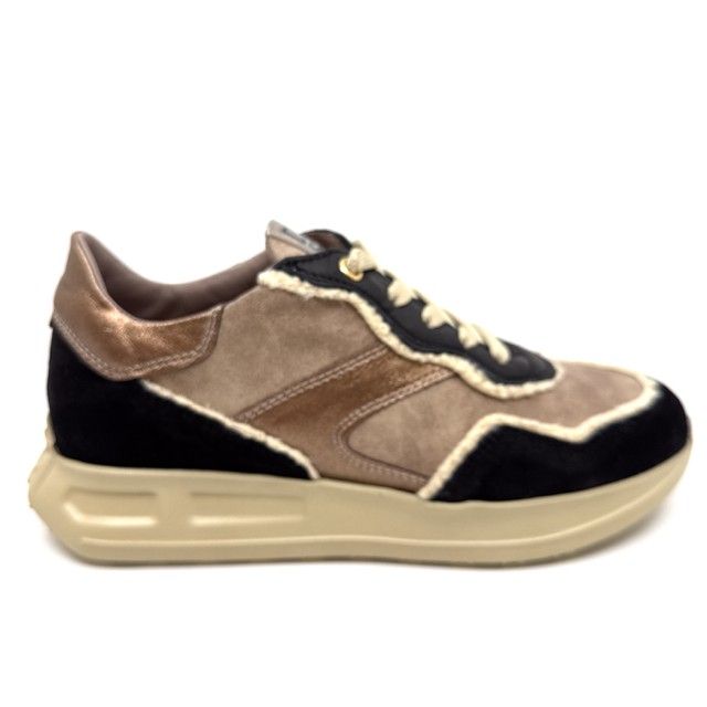 runner in taupe en zwarte daim met uitneembaar voetbed.