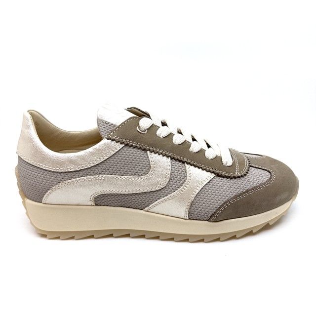 sneaker in taupe daim met tweed, uitneembaar voetbed.