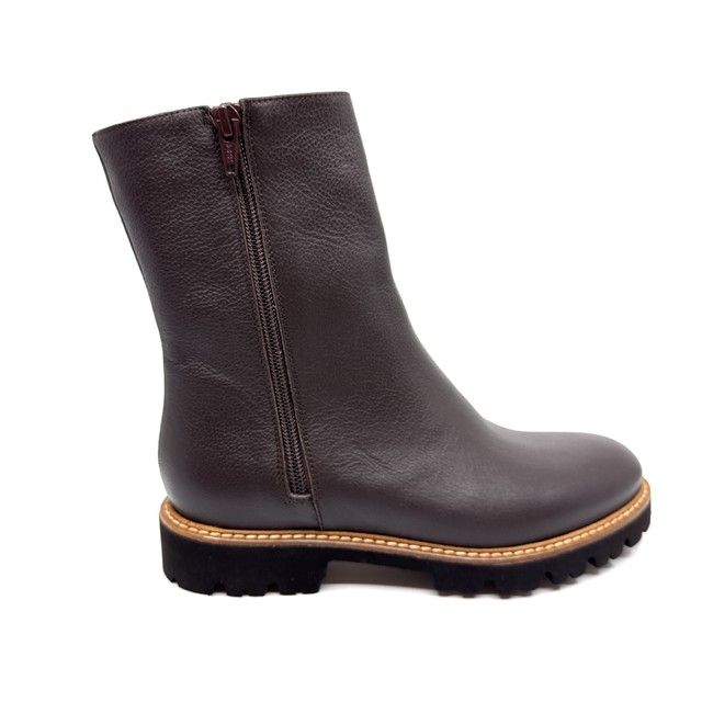 boots in bruin leder met uitneembaar voetbed, geschikt voor steunzolen.