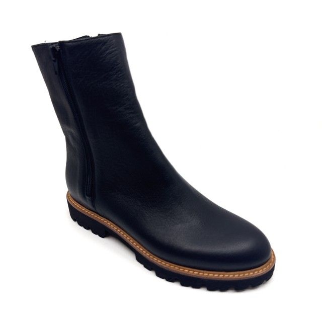 boots in zwart korrelleder met 2 ritsen en uitneembaar voetbed, geschikt voor steunzolen.