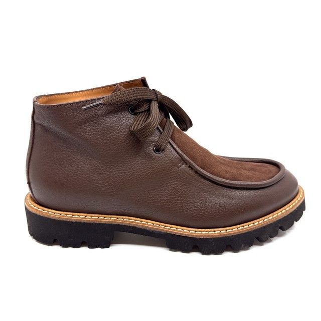 bottine in bruin leder met uitneembaar voetbed, geschikt voor steunzolen.