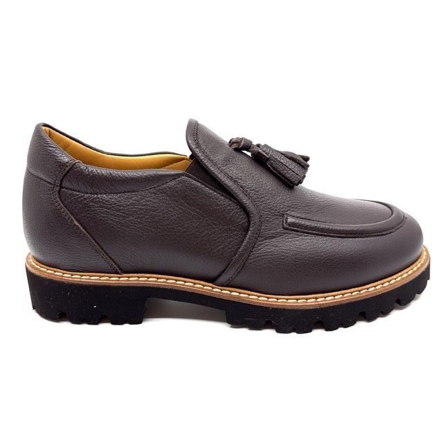 mocassin in bruin leder met kwast en uitneembaar voetbed. geschikt voor steunzolen.