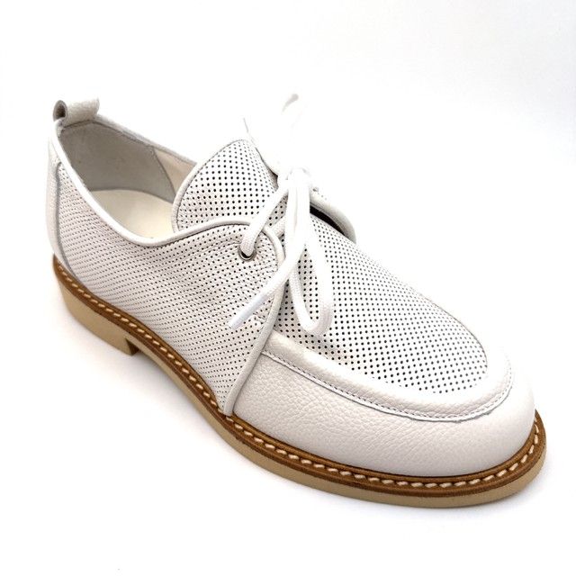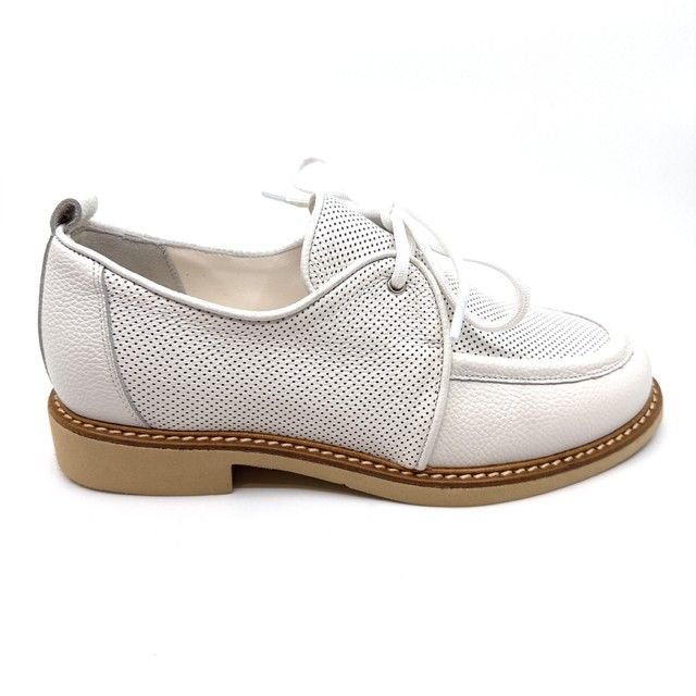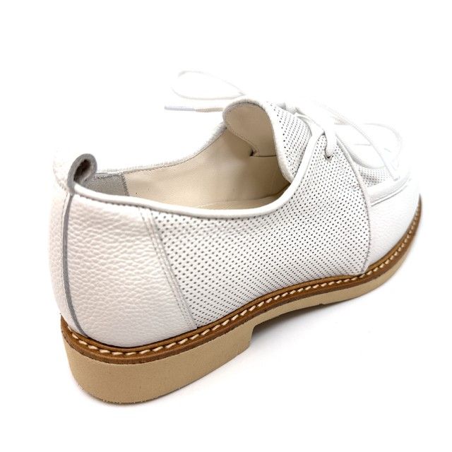 Veterschoen wit leder met uitneembaar voetved, geschikt voor steunzolen.