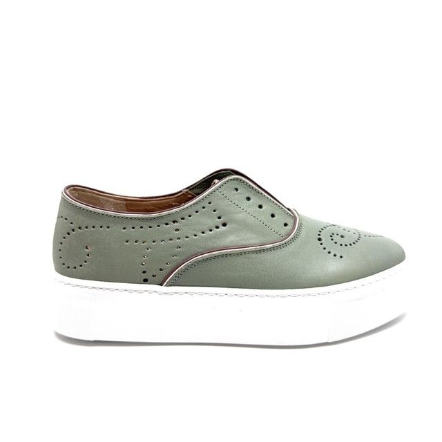 sneaker in zacht groen leder met uitneembaar voetbed.