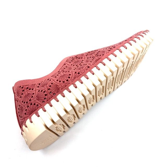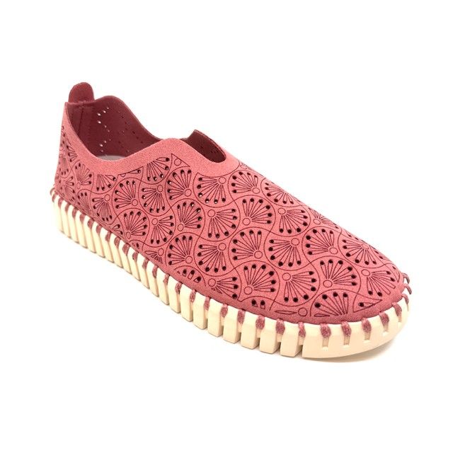instapper in koraalrood gerecycleerd materiaal met uitneembaar voetbed.