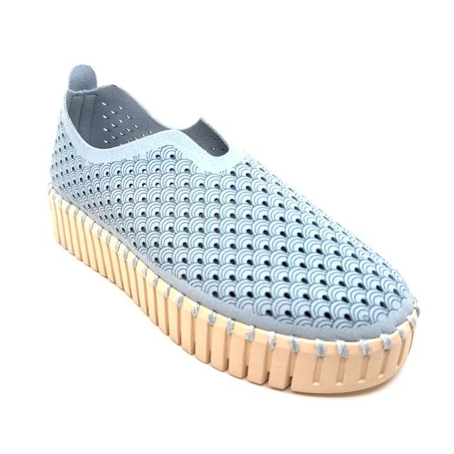 instapper in lichtblauw gerecycleerd materiaal met uitneembaar voetbed.