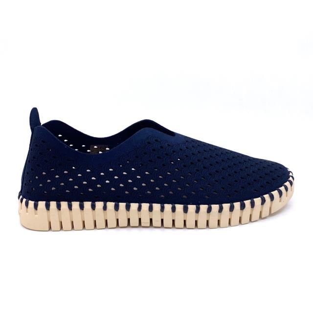 instapper in blauw gerecycleerd materiaal met uitneembaar voetbed.