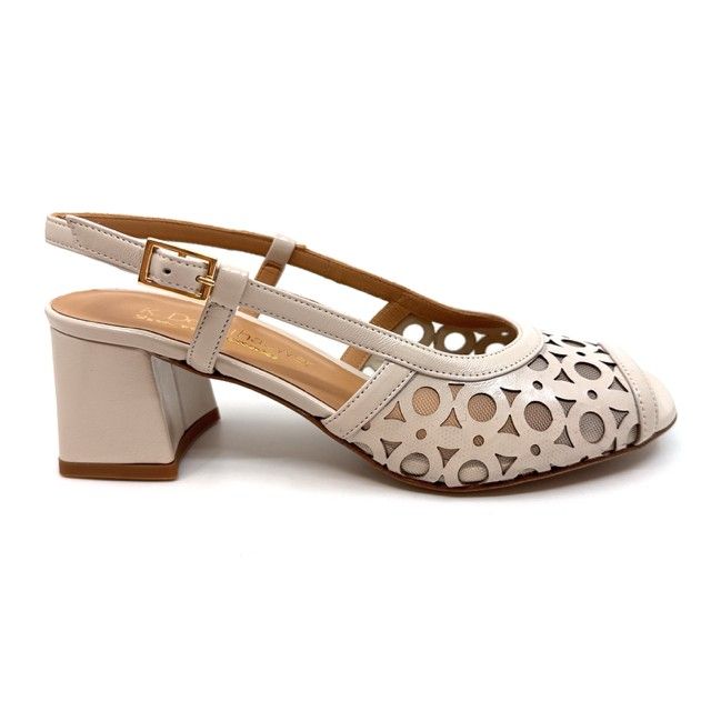 sandaal in off-white lak met leder zool.