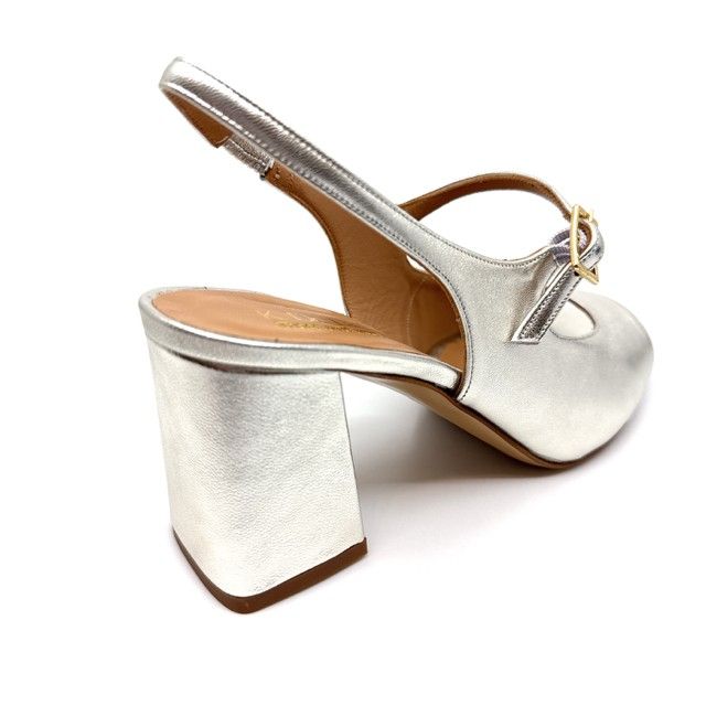 sandaal in zacht zilver metalic met leder zool.