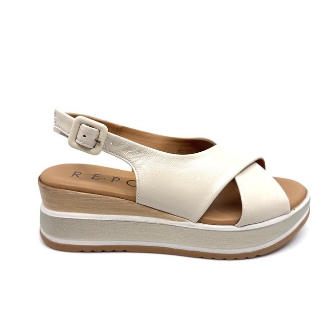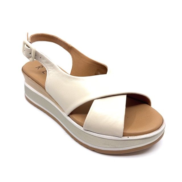 sandaal in off-white leder met sleehak.