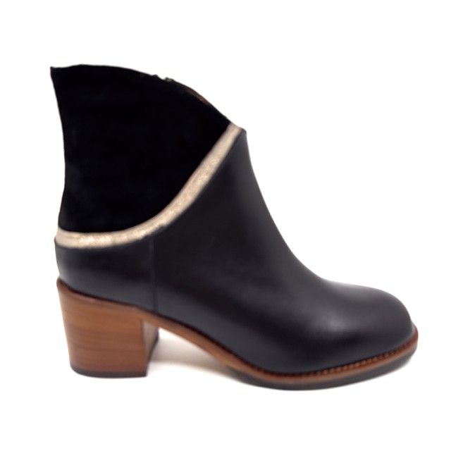 enkellaars in zwart leder met zwarte daim, antislipzool.