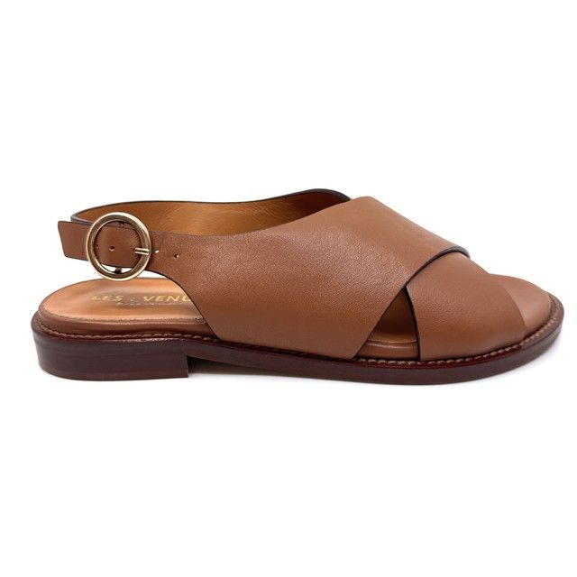 sandaal in cognac leder met leder zool.