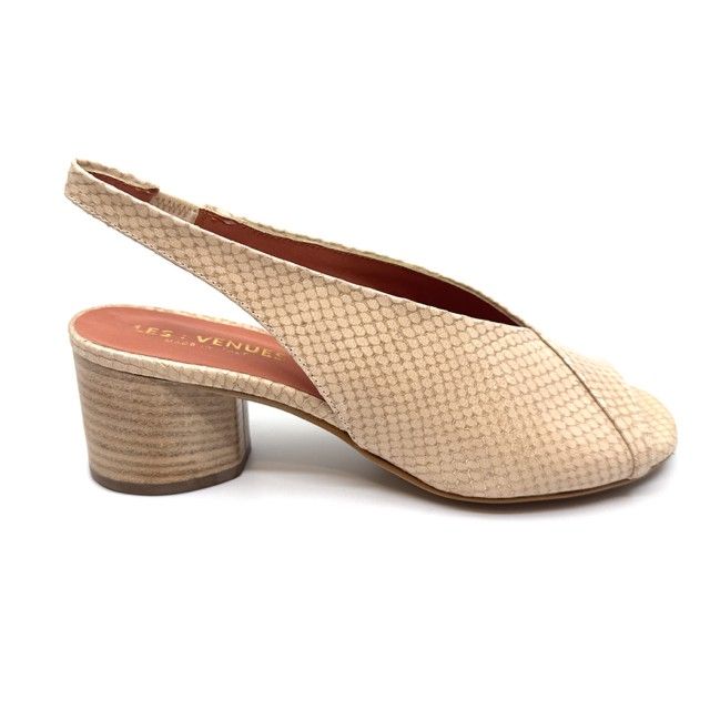 sandaal in off-white leder met lizard-print.