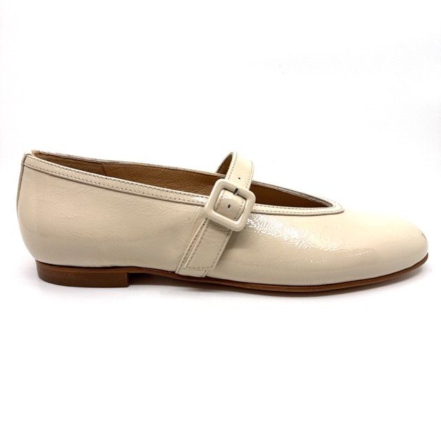 ballerina in off-white lakleder met leder zool.