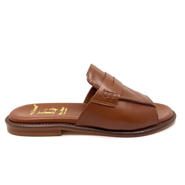 muiltje in cognac leder met leder zool.