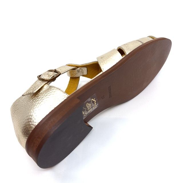 sandaal in zacht laminato goud met leder zool.