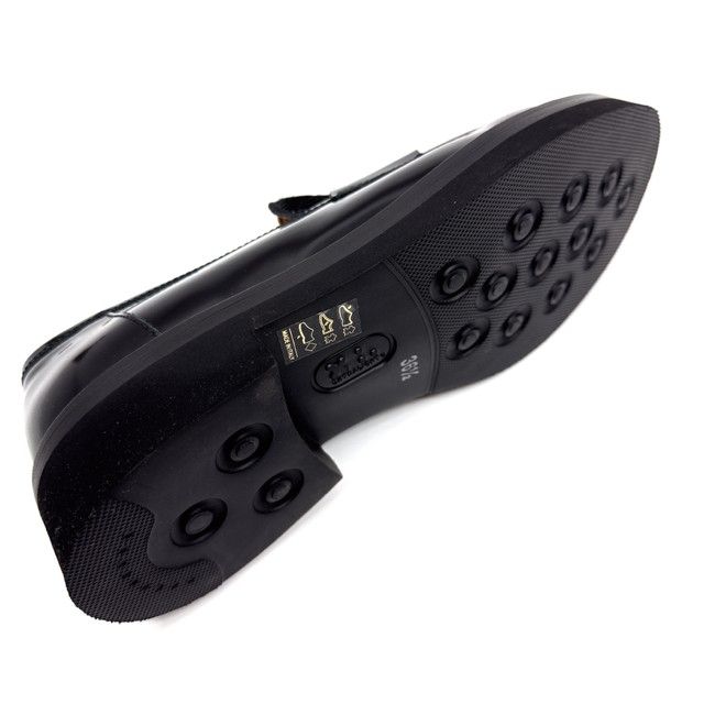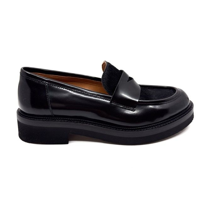 mocassin in zwart spazzolatoleder met pony en antislipzool.