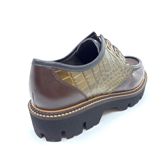 veterschoen in bruin en kaki leder met antislipzool.